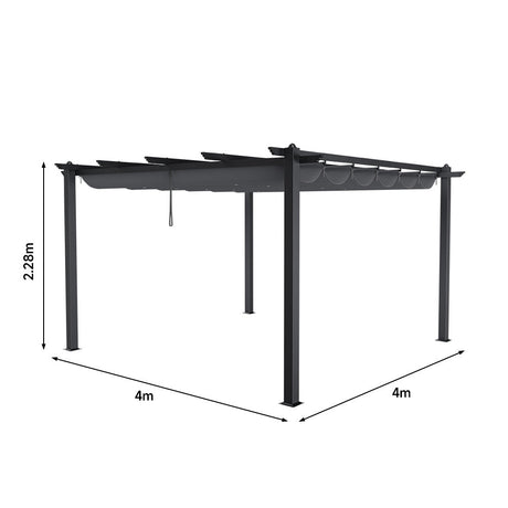 4x4M Black Outdoor Aluminum Patio Pergola with Charcoal Grey Canopy