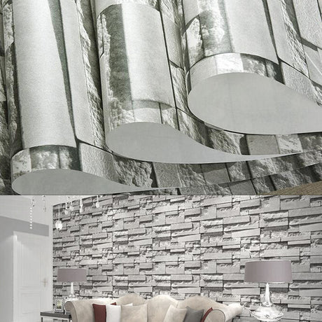 Stacked Brick Wallpaper Realistic 3D Effect Rustic Feature Wall Covers, Dark Grey