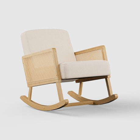 Solid Wood Rocking Chair with Cushions Rattan Armrest Rocker