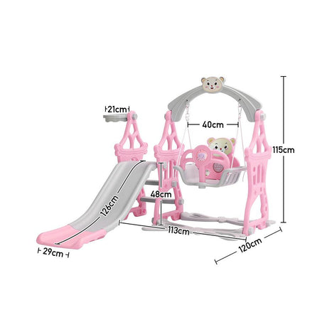 Pink Indoor and Outdoor Swing and Slide Set for Kids