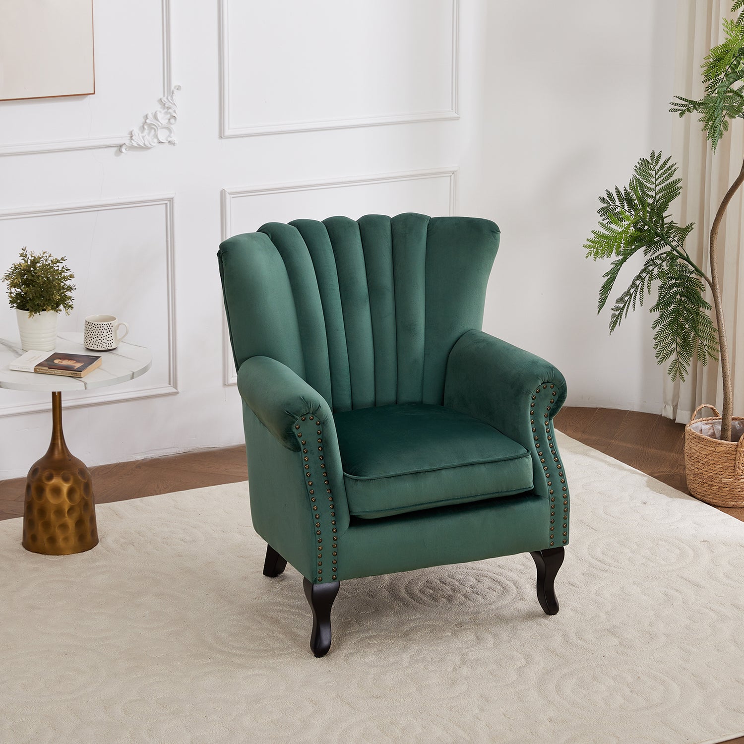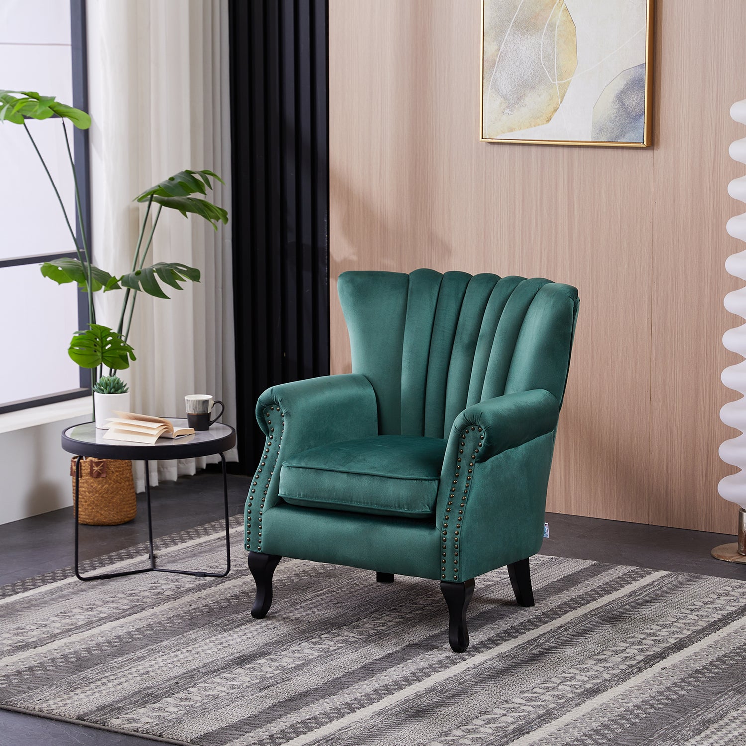 Green Velvet Armchair Luxury Accent Chair with Black Legs