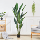 Bring a taste of the tropics into your abode with this potted artificial bird of paradise plant from ! It offers organic allure without even having you worry about watering or finding the perfect rays of sunlight. It is nestled inside an understated and round black pot for versatile appeal, but you can always place it into another pot of your choice. This fake strelitzia reginae plant will create a sunny atmosphere wherever you place it.