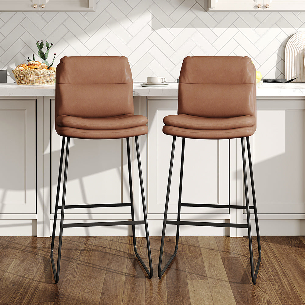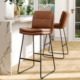 2Pcs Modern Faux Leather Breakfast Bar Stools,Brown