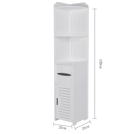 4 Tier White Corner Cupboard Storage Shelf for Bathroom