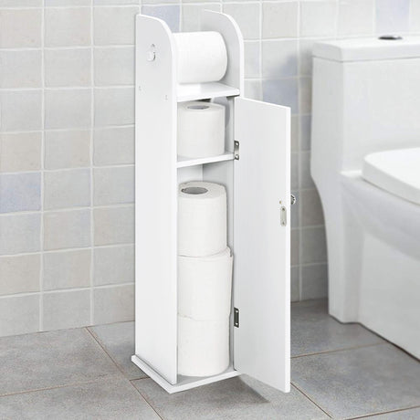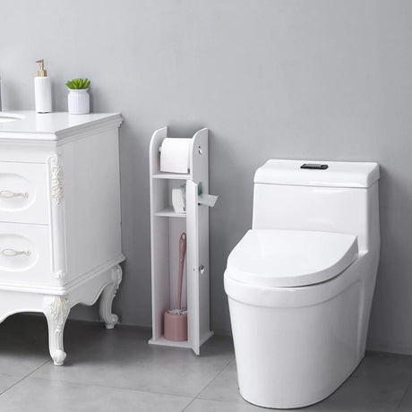 Wooden Free Standing Toilet Tissue Roll Holder, White