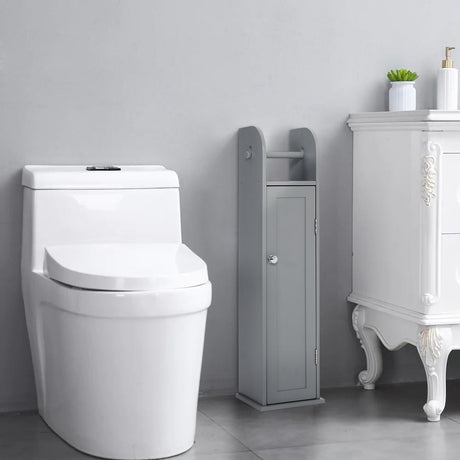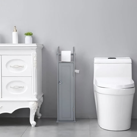 Wooden Free Standing Toilet Tissue Roll Holder, Grey