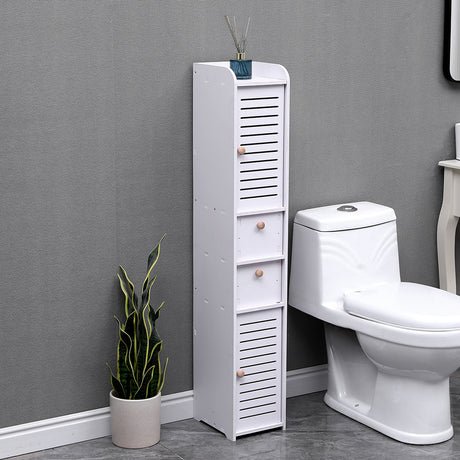 White 118cm H Freestanding Wooden Tall Bathroom Cabinet