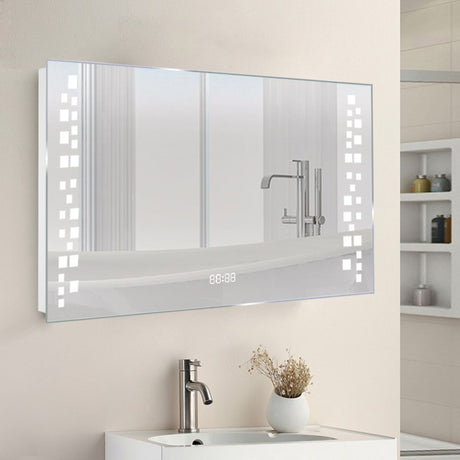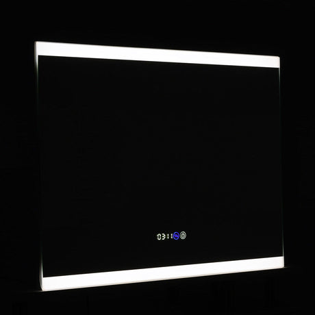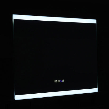 Rectangular Frameless AntiFog LED Vanity Mirror with Clock,80x60