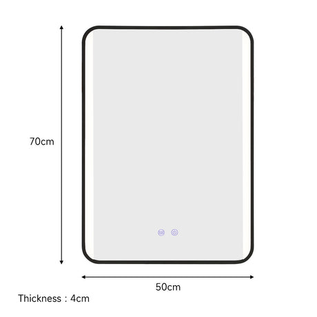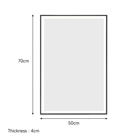 Black 50cm Rectangular Anti Fog Bathroom Vanity Mirror Touch Sensor