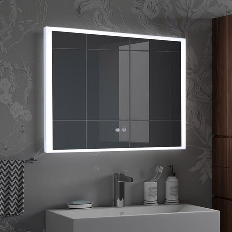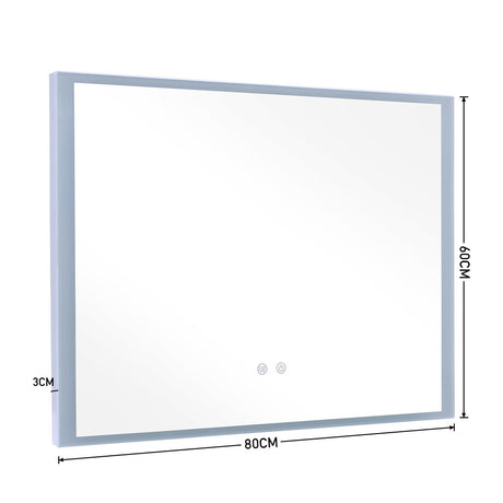 LED Illuminated Antifog Wall Mounted Mirror Touch Control Switch with Shaver Socket, 800x600MM