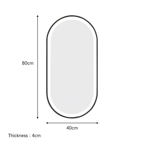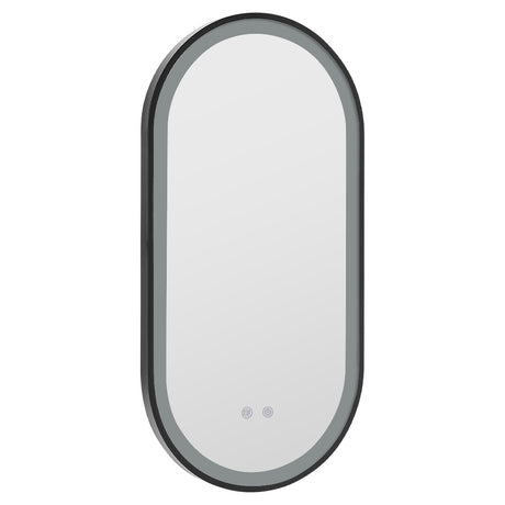 Black Modern Oval LED Wall Mirror Metal Framed