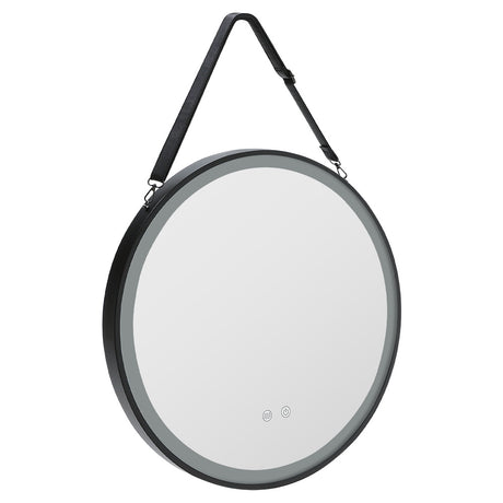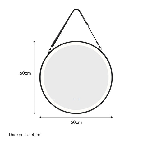 Black 60cm Round Metal LED Mirror with Hanging Strap