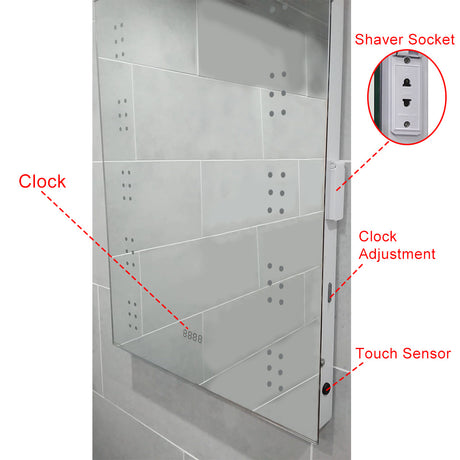 LED Illuminated Anti-fog Wall Mounted Mirror Touch Control Switch with Shaver Socket