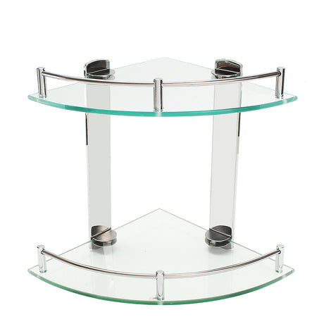 2 Tier Glass Corner Floating Storage Shelf Bathroom Shower Organizer
