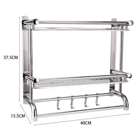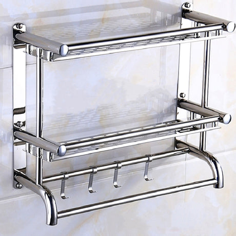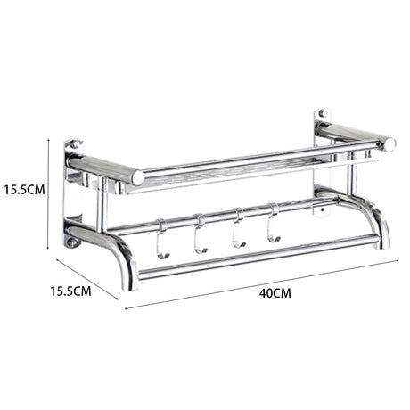 Wall Mounted Bath Towel Rail Bathroom Shelf Holder with Hooks