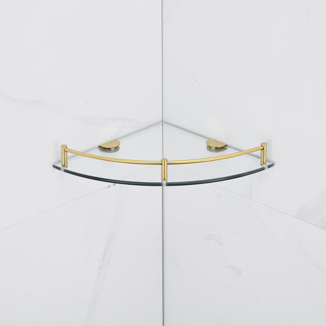 Gold Set of 2 Bathroom Glass Corner Shelf Wall Mounted