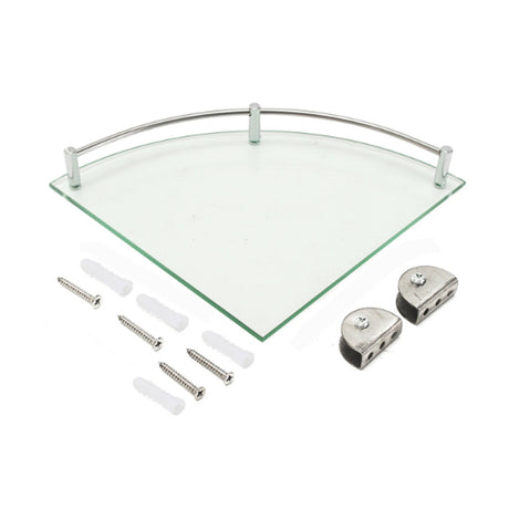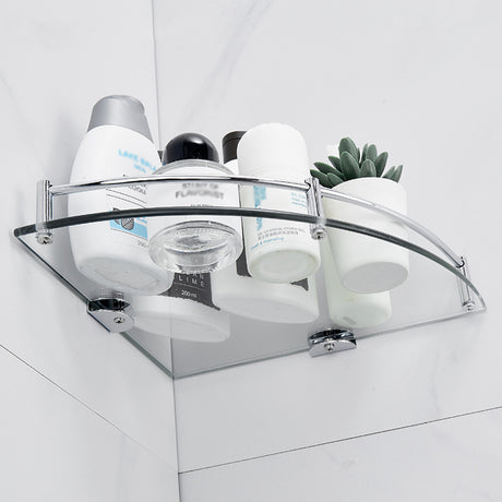 Silver Set of 2 Bathroom Glass Corner Shelf Wall Mounted