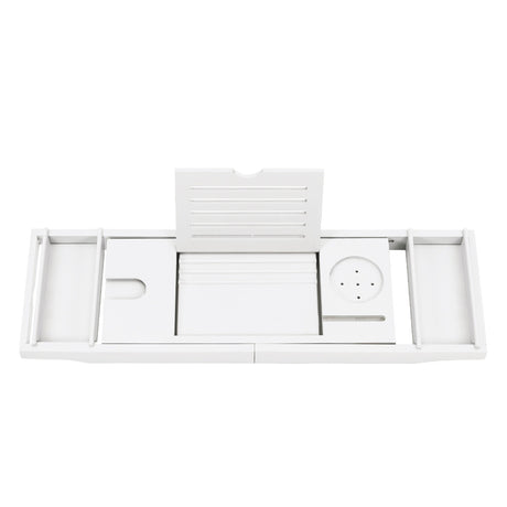 Bamboo Wood Bathtub Tray with Tablet Holder Cup Slot phone slot, White