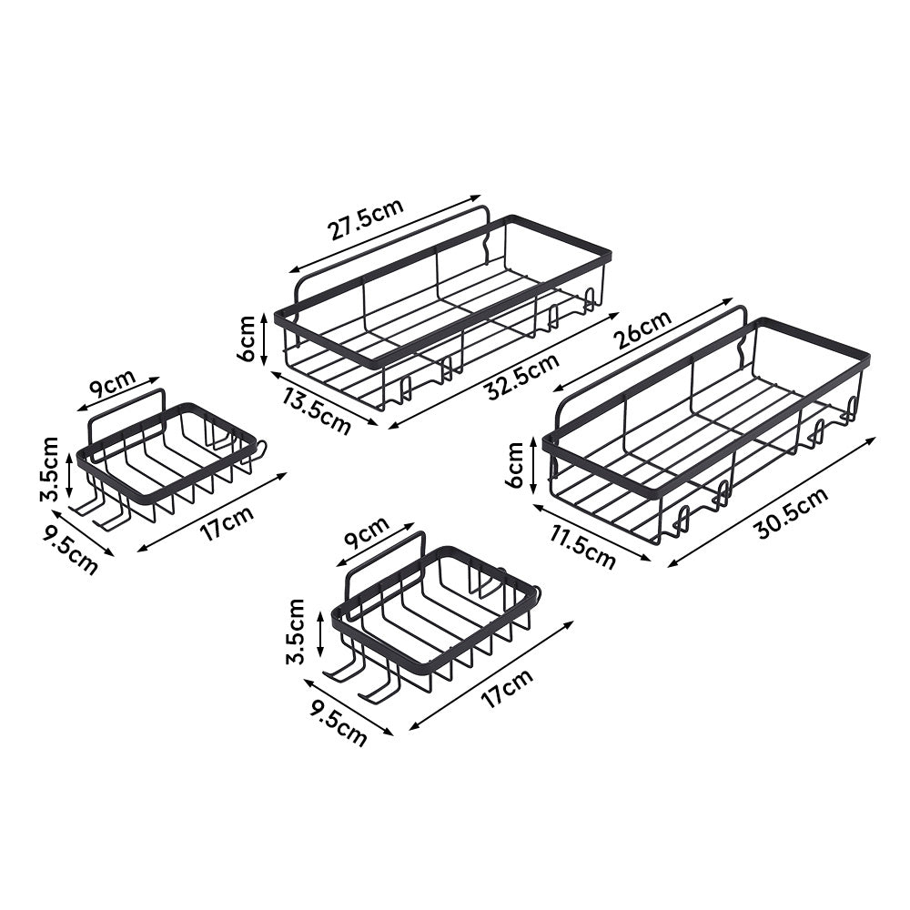 Black 4Pcs No Drill Shower Caddy Set with Wall Stickers