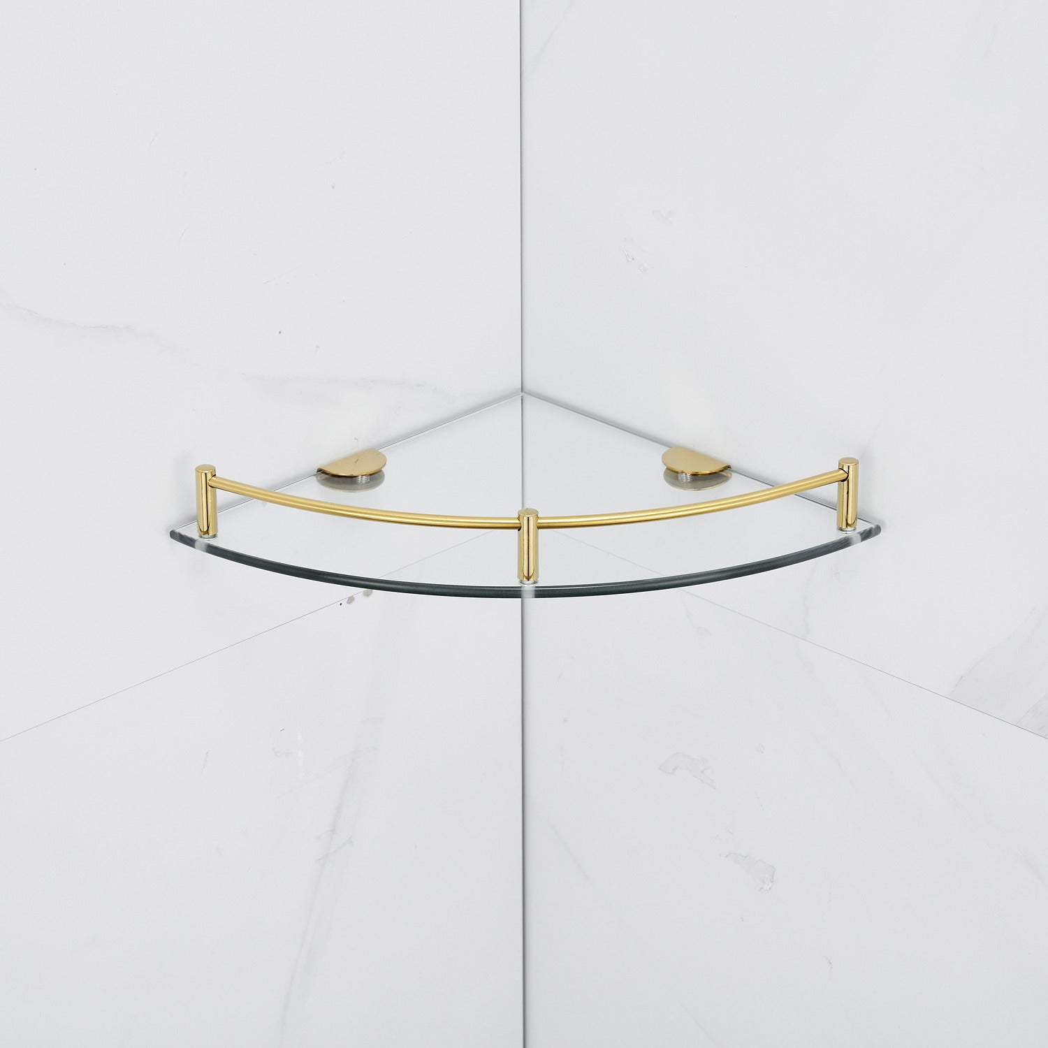 Gold Set of 2 Bathroom Glass Corner Shelf Wall Mounted