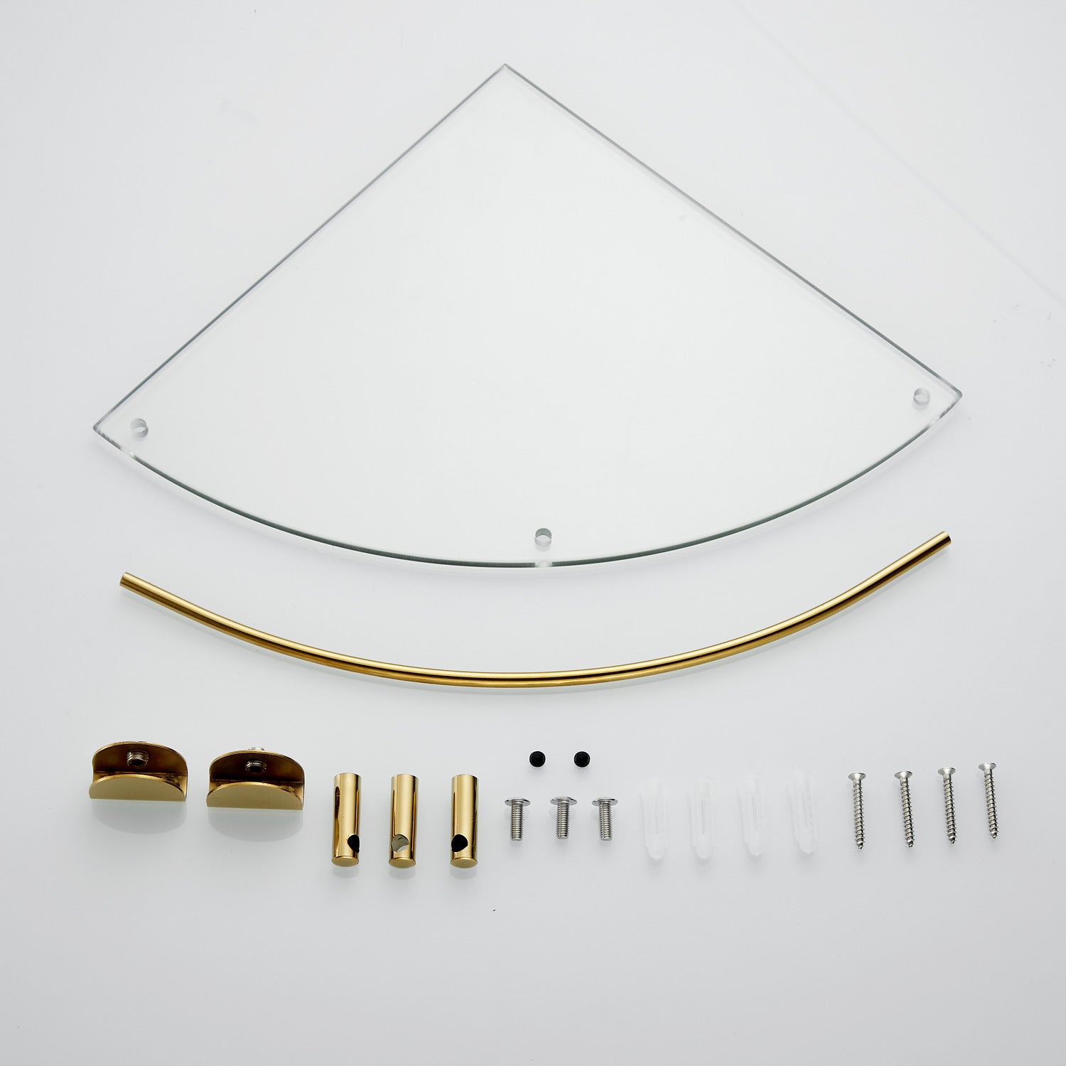 Gold Set of 2 Bathroom Glass Corner Shelf Wall Mounted is backordered and will ship as soon as it is back in stock.