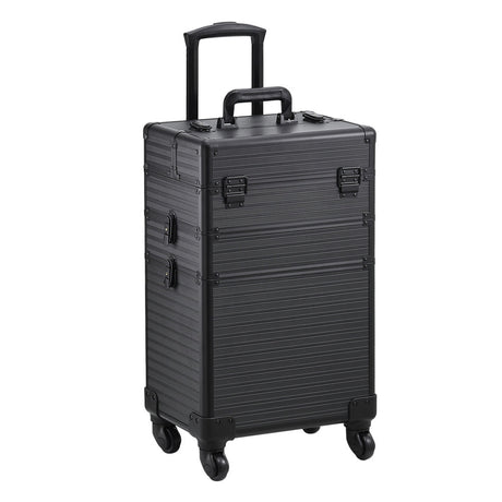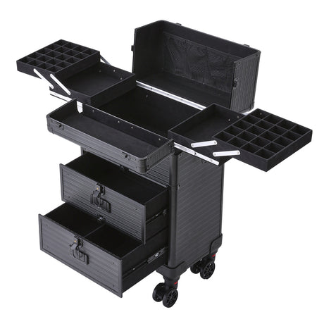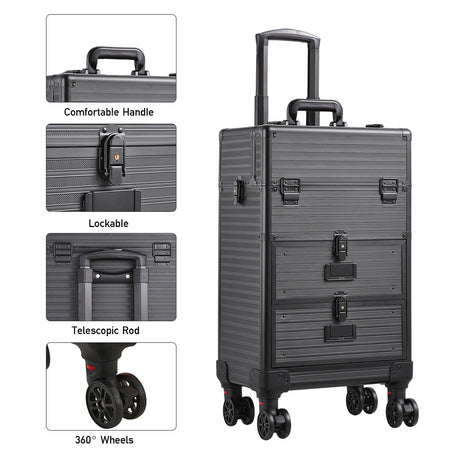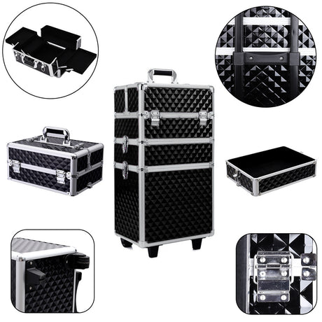 Aluminum 3 in 1 Cosmetic Trolley Case Beauty case on Wheels,Black