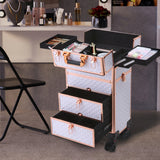 Our Multi-functional Cosmetic Trolley Case is an indispensable asset for makeup artists and beauty lovers who demand convenience and style. The product includes a spacious detachable main makeup case, which also serves as a portable makeup train case. The first drawer can store a variety of beauty tools and the bottom drawer comes with detachable dividers that allow you to adjust the storage space at will. The equipped roller and telescopic handle allow you to easily carry it anywhere, ensuring that you can effectively focus on your makeup work.