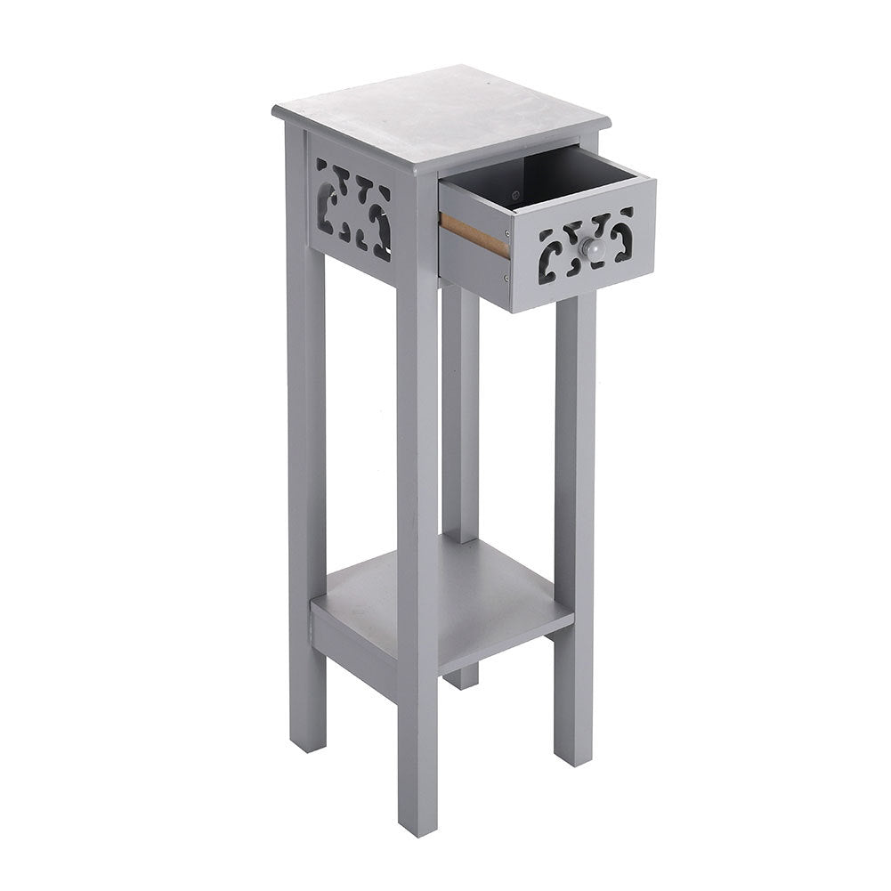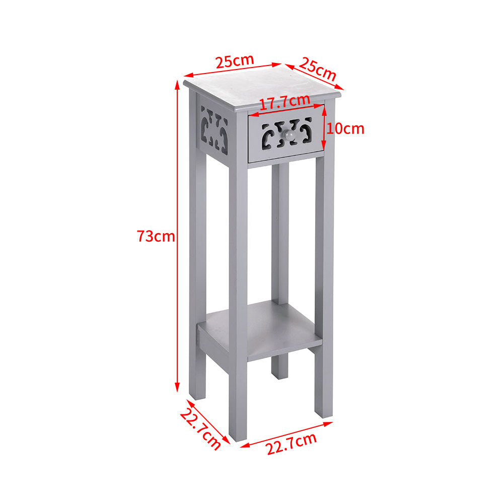 Maximise both style and function with this elegant French-style side table, perfect as a plant stand, telephone table or bedside companion. Its slim design and delicate carved details complement any UK interior, while the built-in drawer and lower shelf provide practical storage for books, accessories or daily essentials. Compact yet versatile, it adds a touch of refined charm to living rooms, bedrooms or hallways, keeping your space organised and stylish.