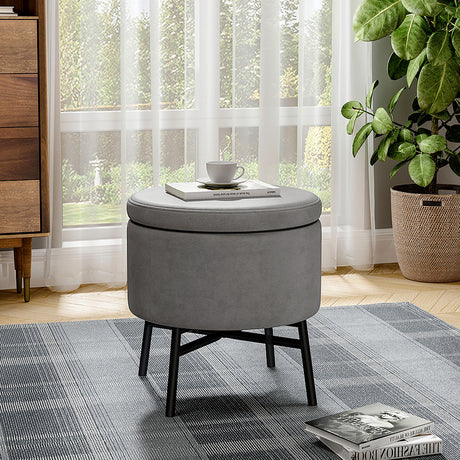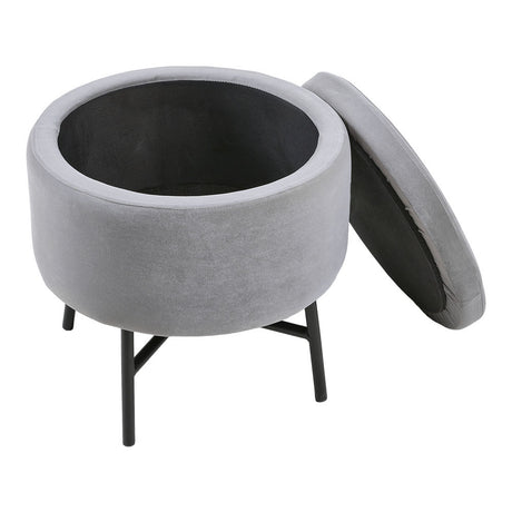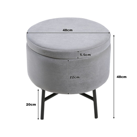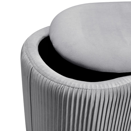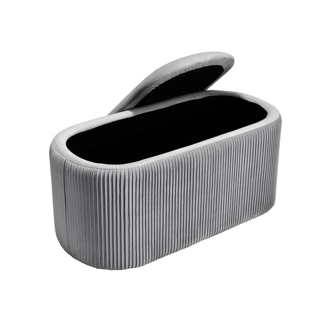 Elliptical Velvet Ottoman Storage Bench, Grey