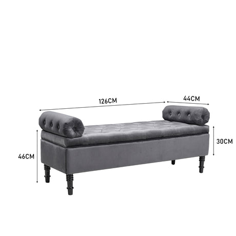 100CM Velvet Storage Ottoman Footstool Rubber Wooden Leg, Grey