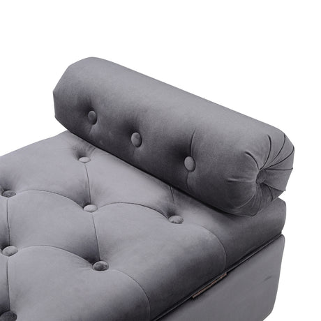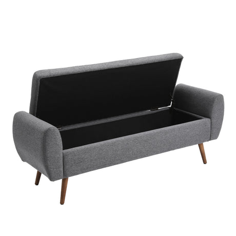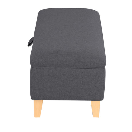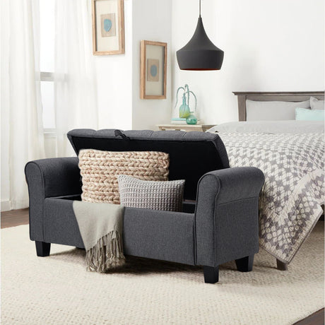 Linen Buttoned Storage Bench with Armrest, Dark Grey