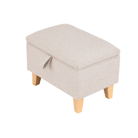 49CM Linen Storage Organizer Ottoman Footstool Beige