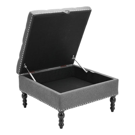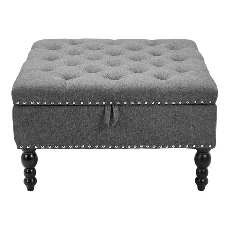 74x77CM Square Tufted Linen Storage Ottoman,Grey