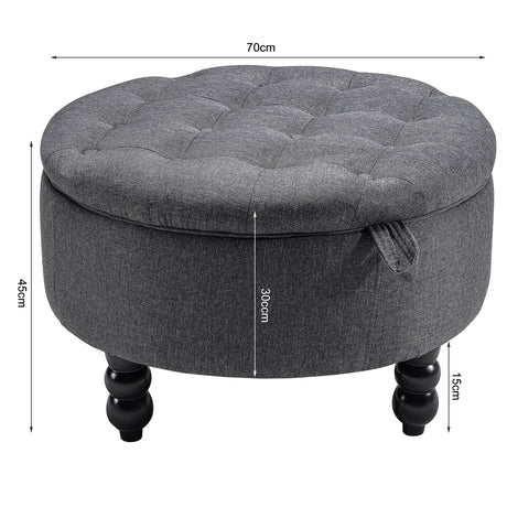 71CM Linen Storage Organizer Ottoman Footstool Dark Grey