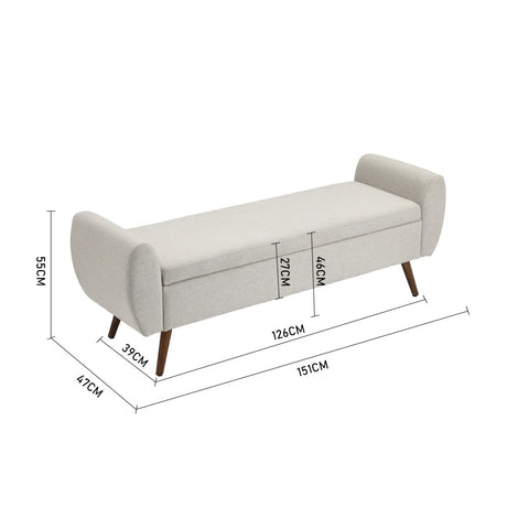 71CM Linen Storage Organizer Ottoman Footstool, Beige