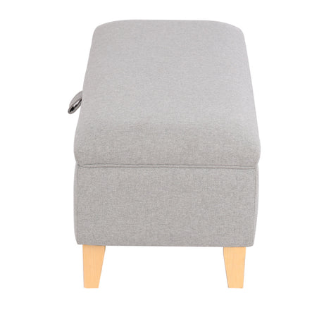 71CM Linen Storage Organizer Ottoman Footstool Light Grey
