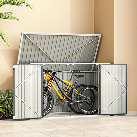 Grey Heavy Duty Steel Bicycle Storage Shed