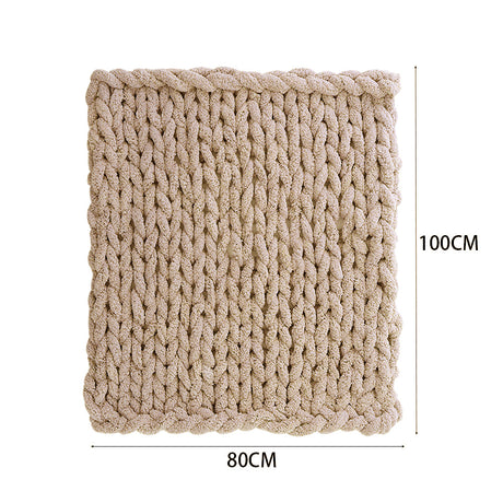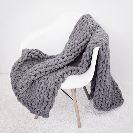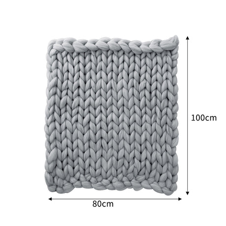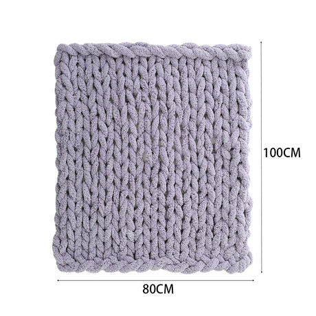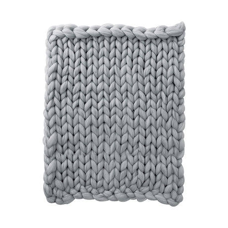 Warm Chunky Wool Yarn Knitted Thick Blanket, Grey 80x100CM