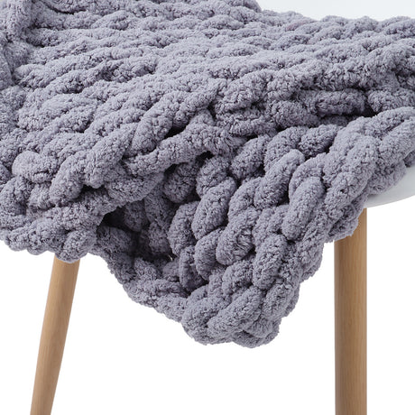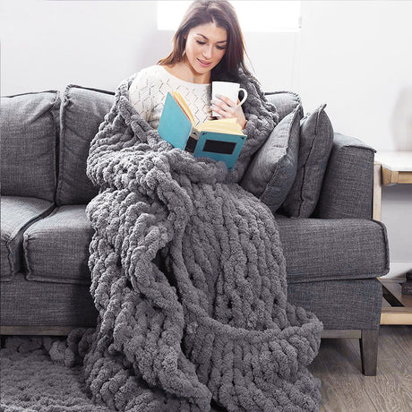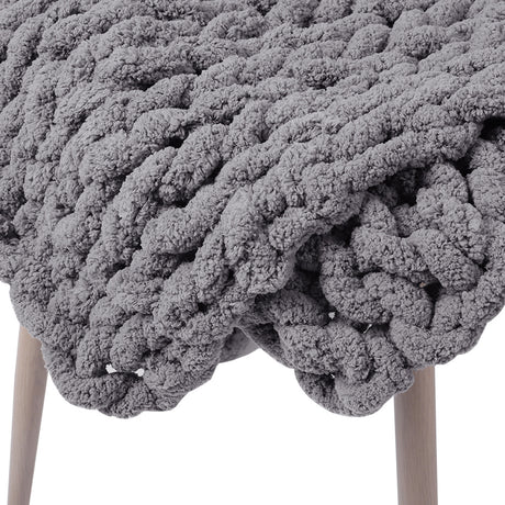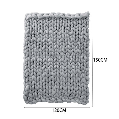 Warm Chunky Wool Yarn Knitted Thick Blanket, Grey 120x150CM