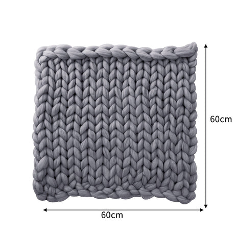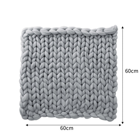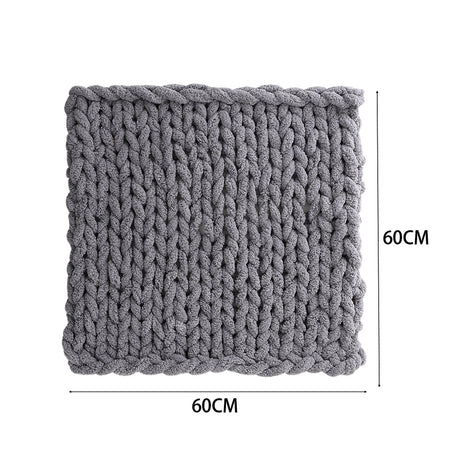 Warm Chunky Wool Yarn Knitted Thick Blanket, Grey 60x60CM