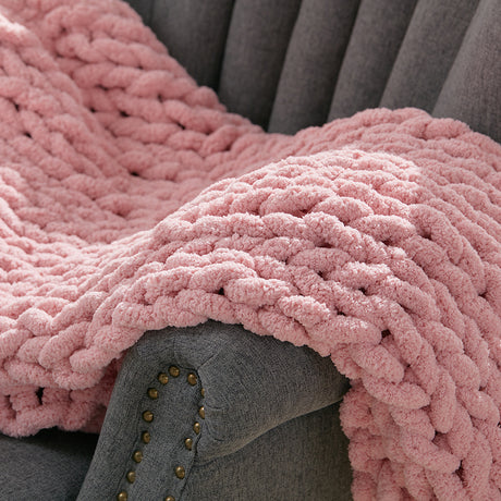 120x150CM Hand Woven Chenille Blanket for Couch and Bed,Pink