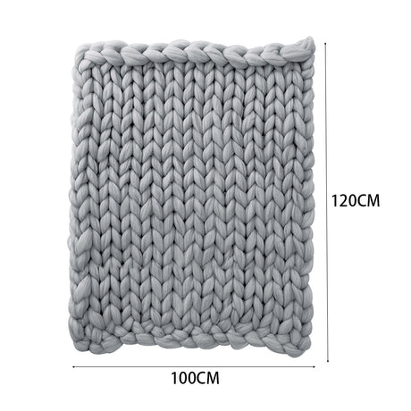 Warm Chunky Wool Yarn Knitted Thick Blanket, Grey 100x120CM