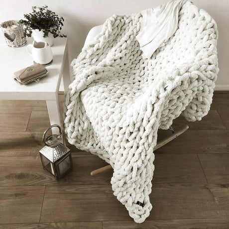 60x60CM Hand Woven Chenille Blanket for Couch and Bed,White