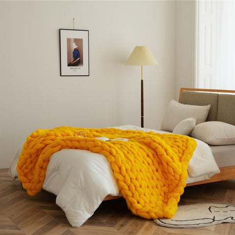 Yellow 100cm Handwoven Chunky Knit Throw Blanket