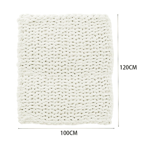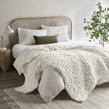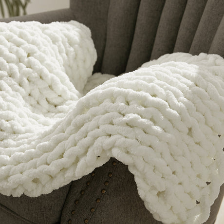 Milk White Hand Woven Chenille Blanket for Couch and Bed