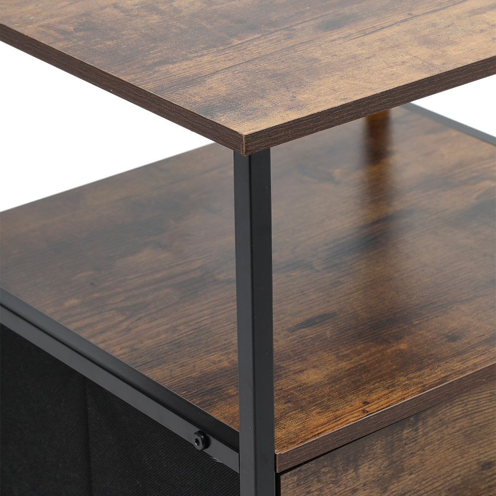 heavy items. Featuring two drawers with iron handles and a shelf, it provides
