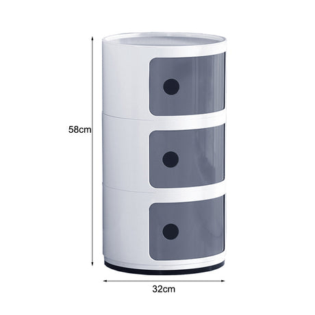 32cm Cylindrical 3 tiered Drawer Storage Drawer Unit White and Grey