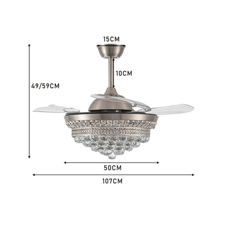 52 Inch Chandelier Ceiling Fan Light with 5 Blades and Remote Control, Chrome