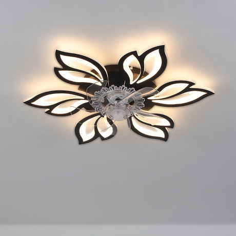 Black Modern Flower Ceiling Fan with 3 Color Lights