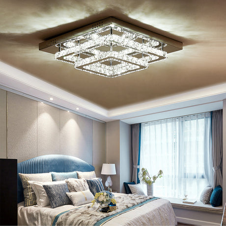 Modern Crystal LED Flush Mount Ceiling Light Fixture 60x60x20CM